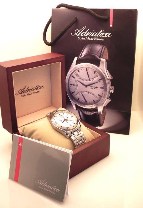 A2804.52B3A Polished stainless steel case, silver worked face with blued hands and hour markers