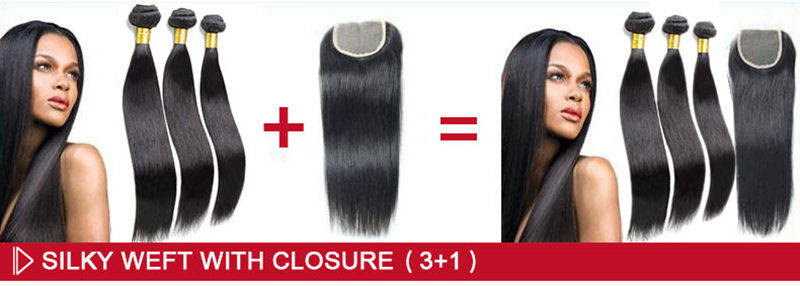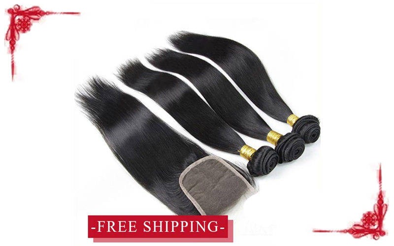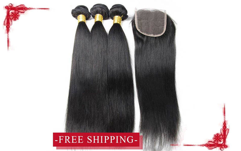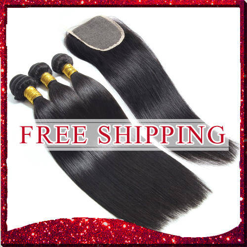 100% Virgin Human Hair, Silky Straight with closure(3+1), FREE SHIPPING