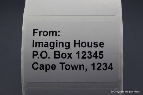 Your address will be printed on a 60x40mm white semi gloss self adhesive paper label. This is how the quality looks up close: