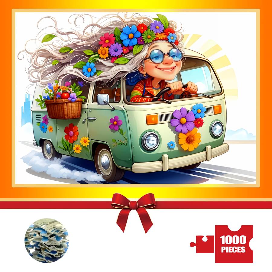 1000pcs Grandmother Drive Bus Puzzles Challenging DIY Brain Games Cardboard Puzzles Color sent randomly Major Material:Paper Applicable Age Group:14 Years+ Color:Mixed Color Item ID:HQ1420487