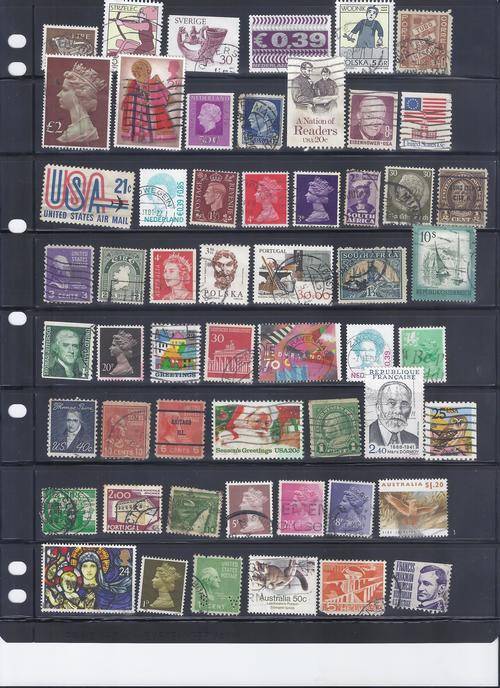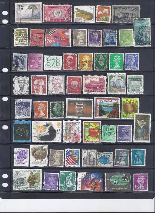 A nice lot of used stamps. All stamps are different but will include duplicate countries. The batch includes both commemoratives and definitives. The images forms part of the description. Album pages are not included.