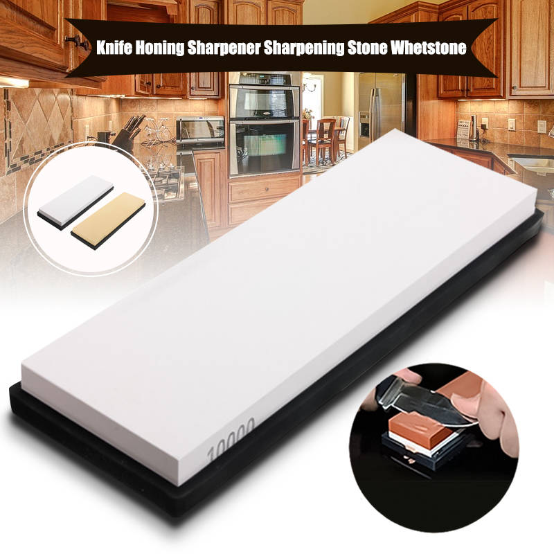 Features: High hardness 10000# Whetstone, great tool for your knife. Good choose for Kitchen knife, precision tool, Sushi knife and so on. Silicone anti-slip stand, beautiful and useful. Use: First, soak into the water for 15 minute, then Sharping as coarse first, thin later. Don't Scrape off the starch solution, it will help sharping the knife Specifications: Size: 180mm x 60mm x 15mm / 7.08'' x 2.36'' x 0.59'' Color: White, Yellow Material: White corundum Package Contents: 1 x Whetstone 1 x Whetstone stand