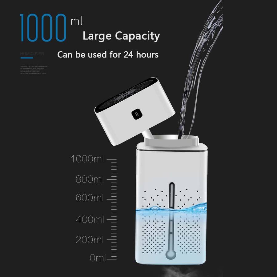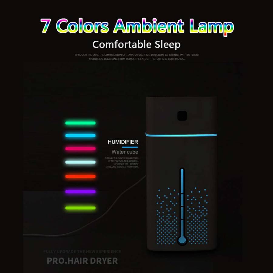 Specifications: a Color: White; Black a Material: ABS+PP a Voltage: DC5V a Power: 3W a Water Tank Capacity: 1000ML a Humidifying Capacity: 50ML/H a Applicable Area: 30-40 a Noise: 30dB a Size: 103x103x218mm/4.06x4.06x8.58'' Features: a Add moisture to the air to sooth dryness and help you sleep better. a Features with a cozy 7-color night light, stylish and useful. a Compact size, suitable for living room, bedroom, office, etc. a When the reservoir is empty, the machine would turn off automatically for safety. a 1L large capacity water tank, no more worry about refilling water frequently. Usage: a Beauty: Refresh skin and can be taken as a skin care, keep skin healthy and moist. a Decoration: Chose the light you like to make the room romantic and happy,smells nice. a Humidify: Humidify the air in the room during summer and winter, refreshes the quality of air we breathe. a Purify: Neutralizes static, reduce infection of skin. Package Include: 1 x Air Humidifier 1 x USB Cabl