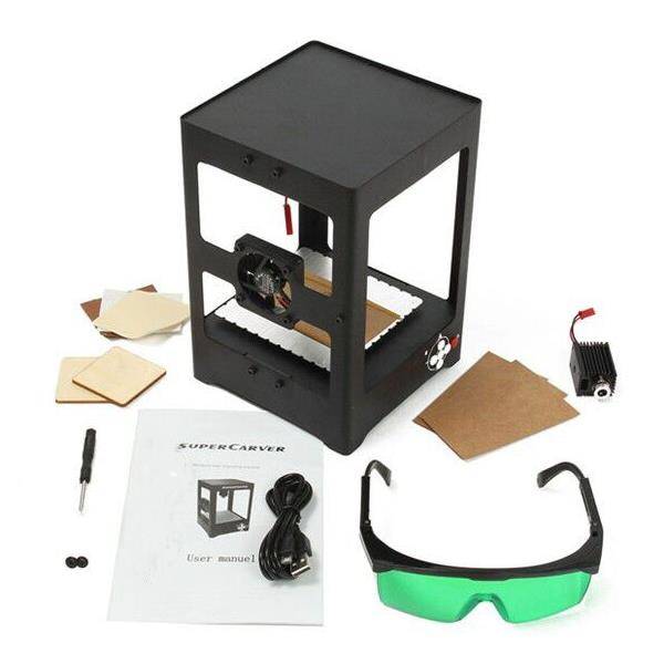 Packing List: 1 x Carving machine 1 x 1000mW modulated laser head 1 x Power cable 1 x USB Data Cable 1 x Goggle 1 x 2.0 U- Disk(Software) 1 x CD 2 x Small Wood Board 3 x Paper 1 x Screwdriver(with 2 screws) 1 x User's Manual