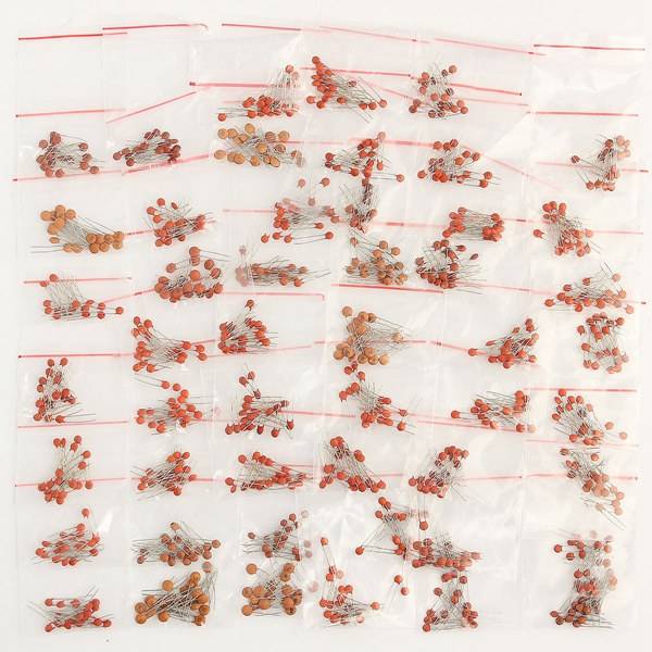 1000Pcs 50 Value 50V Ceramic Capacitor Assorted Assortment Kit Features: 1. Durable and easy to install 2. Very convenient and practical 3. High precision and stability 4. Very popular among the electronic lovers 5. Many type of metal film resistors assorted,can meet your different demand. Description: Structure: Fixed capacitors Size of Capacitor: 4 x 3mm / 0.15 x 0.12 inch(Approx) / L x W Capacitor Range: 1pf~100nf Capacitor Tolerance: ±10%. Quantity: 1000PCS (20PCS in each type) Package include: 1000 x Ceramic Capacitor