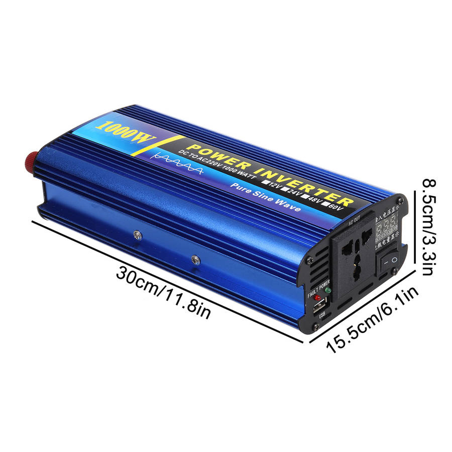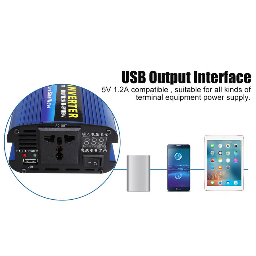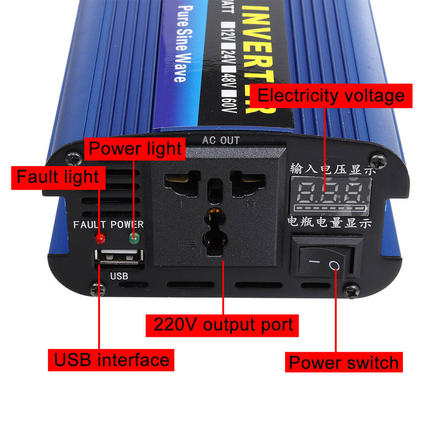 - The inverter can convert DC12/ 24/ 48V to AC 220V.
