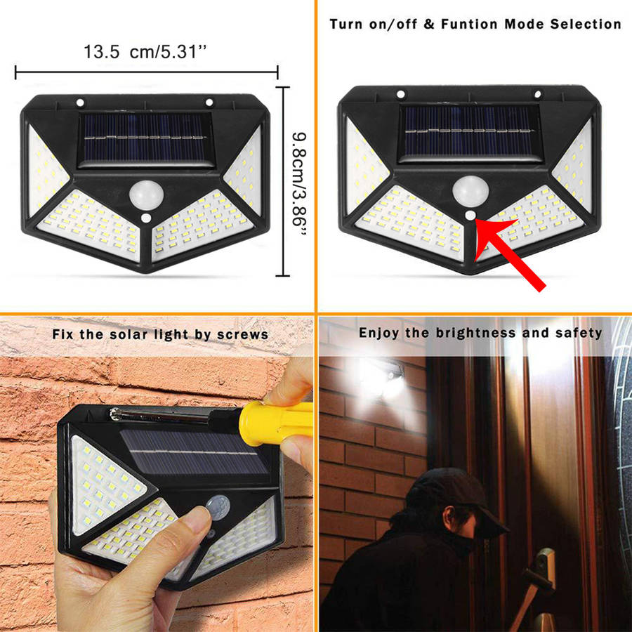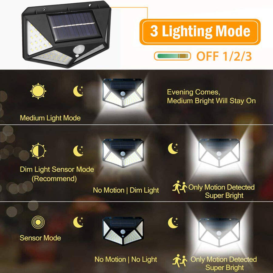 100LED Solar Motion Sensor Wall Light Outdoor Garden Lamp Waterproof Security Ligh... (COLOR: BLACK)