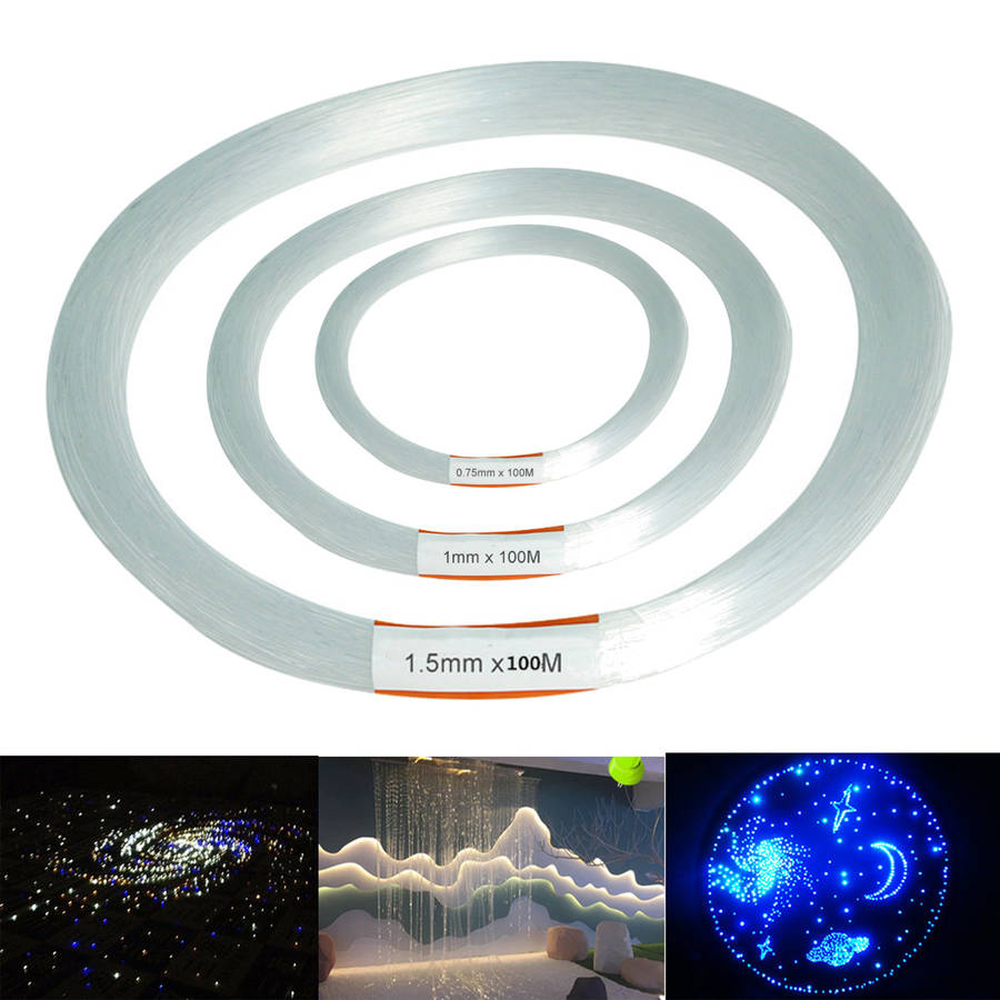 100m PMMA Clear Plastic Fiber Optic Cable End Grow Led Light Decor 0.75 / 1 / 1