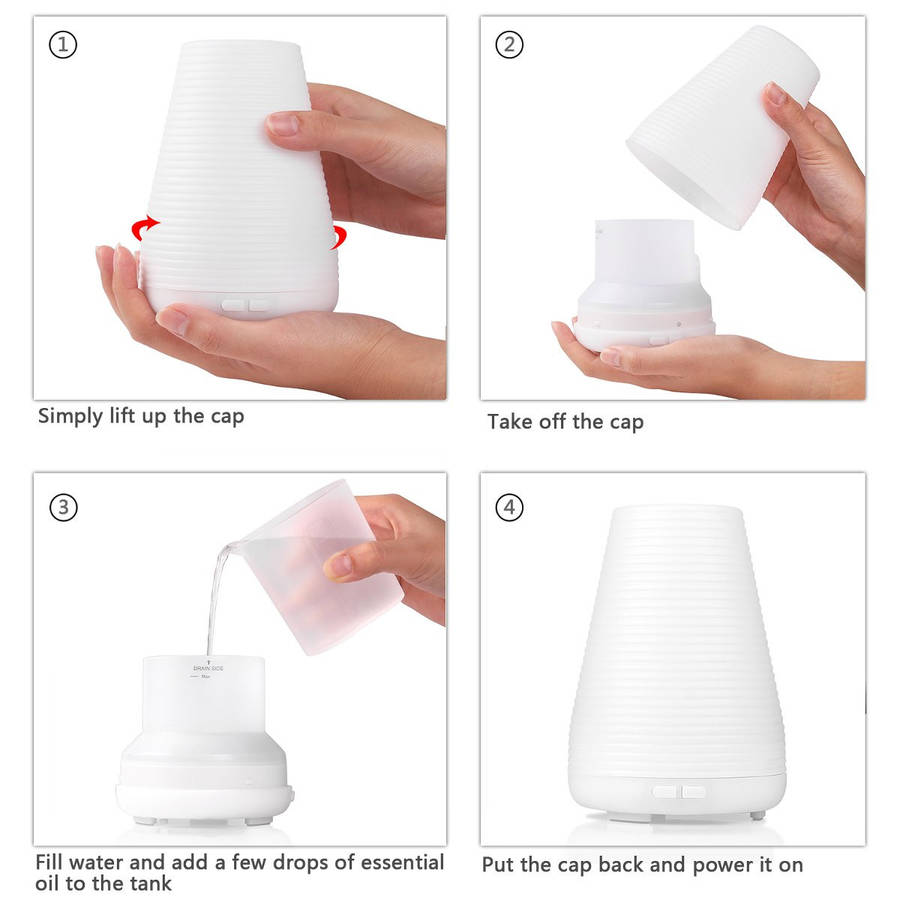 For Aromatherapy:simply add 3-5 drops of essential oil into the water, relieve stress.
