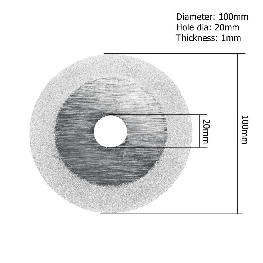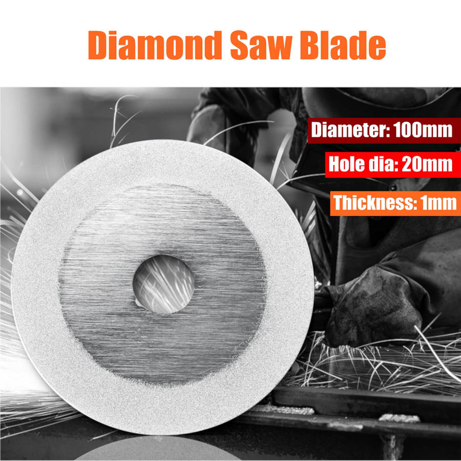 Descriptions: Glass ceramic granite diamond saw blade disc cutting wheel for angle grinder Specifications: Material: Diamond Diameter: 100 mm Hole diameter : 20 mm Thickness: 1 mm Color : Silver Features: - Sharp, wear-resistant, not easy to fall off. - Let Emery direct contact with the cutting object to achieve sharp effects. - Please add water for coolant when using diamond tools. - Use for: cutting glass , glass tiles , stone , brick, porcelain, slate, limestone , ceramics, granite ect. Package Include: 1 x Diamond Saw Blade More Details: