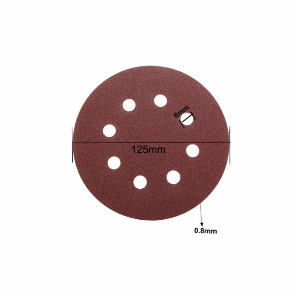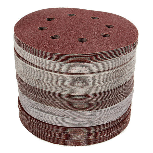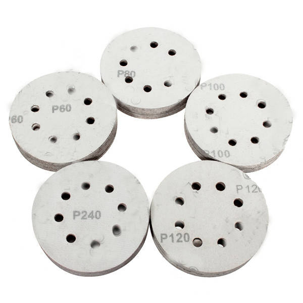 Description :100pcs 125mm 8 Holes Abrasive Sand Discs60-240 Grit Sanding PapersSpecification: Material: Aluminum Oxide Diameter: 125mm Holes: 8 holes Thickness: 0.8mm/0.03 Sizes: 60 Grit, 80 Grit, 120 Grit, 180 Grit, 240 Grit Grit Range : Very Coarse - Coarse - Medium - Fine - Very Fine Quantity: 1 Set Of 100pcs 20pcs x 60 Grit Sandpaper 20pcs x 80 Grit Sandpaper 20pcs x 120 Grit Sandpaper 20pcs x 180 Grit Sandpaper 20pcs x 240 Grit Sandpaper Usage: All sheets are designed to be used dry. They are ideal for use on wood,metal and leather. Durable, efficient grinding, easy to use. Widely used for grinding and polishing artificial stone, furniture and wood products, metals, cars and polishing stick plate etc. Sanding papers coated with aluminium oxide bound with synthetic resin are the perfect choice for working of all wood, woodbased materials, and metal, from coarse sanding to fine sanding. 40-60 grain are used for coarse sanding of rough surfaces, 80-120 grain are suitable for surface smoothening and sanding of small roughnesses, 180-400 grain are good for final fine sanding. Pack Included (1 Set): 100pcs x Orbit Sanding Sandpapers More Details: