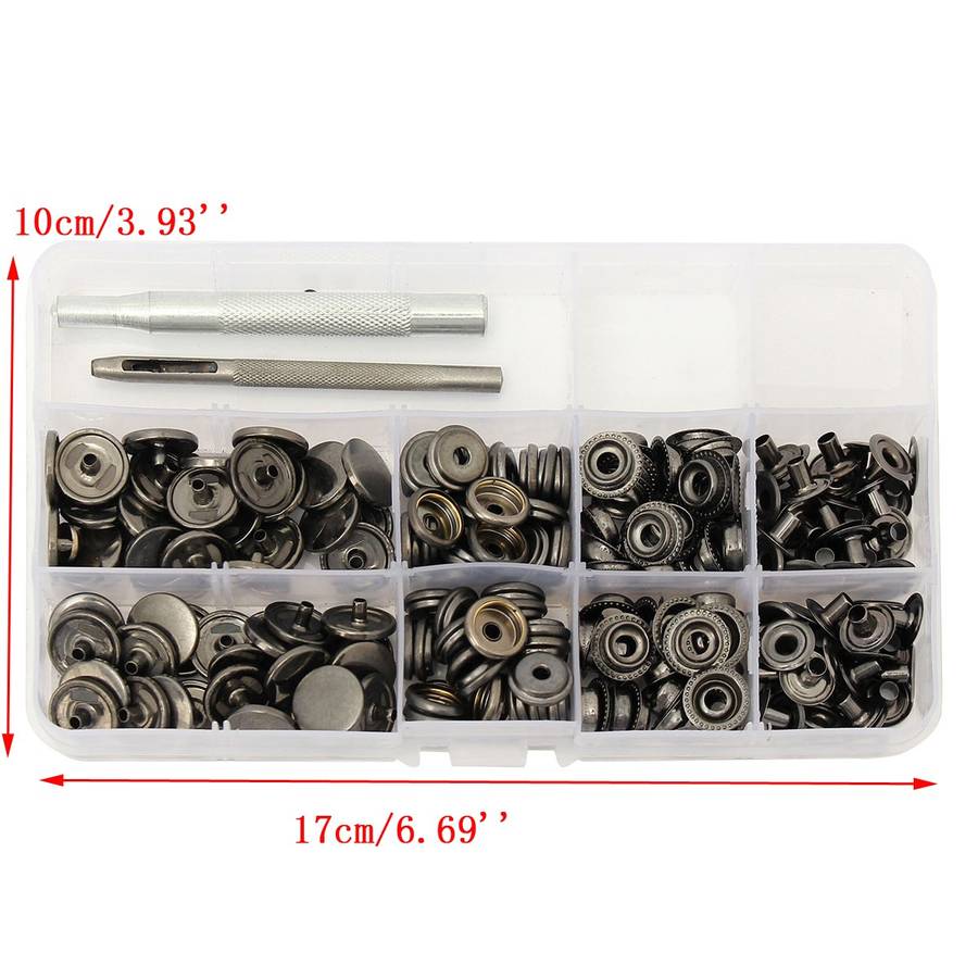 100pcs 15mm Black Snap Fasteners Popper Press Stud Button Leather Tool Kit