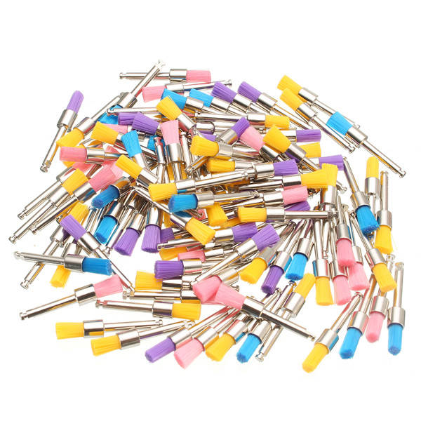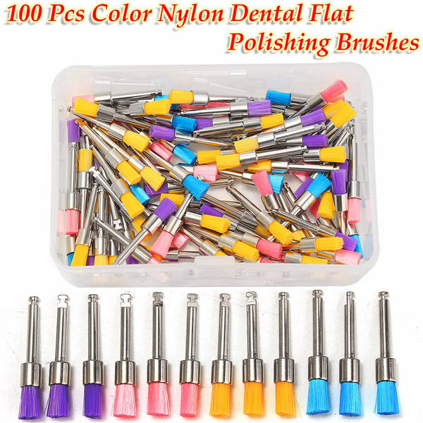 100pcs 2.35mm Shank Colorful Nylon Flat Polishing Brushes Set Polisher Prophy Brushes