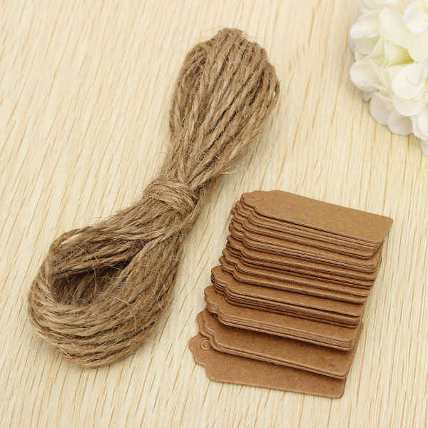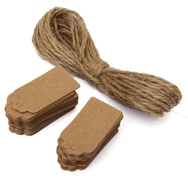Description 100pcs 4*2CM Kraft Paper Gift Tags with 8m Twine Specifications Material: Kraft Paper Color: Natural Brown Twine Length: (approx.) 8m Size: (approx.) 4*2cm Hole Diameter: (approx.) 0.3cm Features The kraft paper tags is applicable to scrapbooks, escort cards, gift message, price tags and so on. Perfect for decorating events as invitation favours, such as wedding. Nice vintage retro appearance. Package included 100 x Kraft Paper Tag 1 x 8m Twine