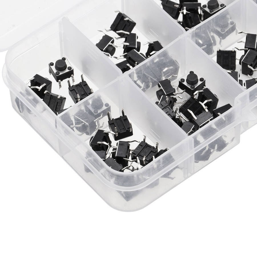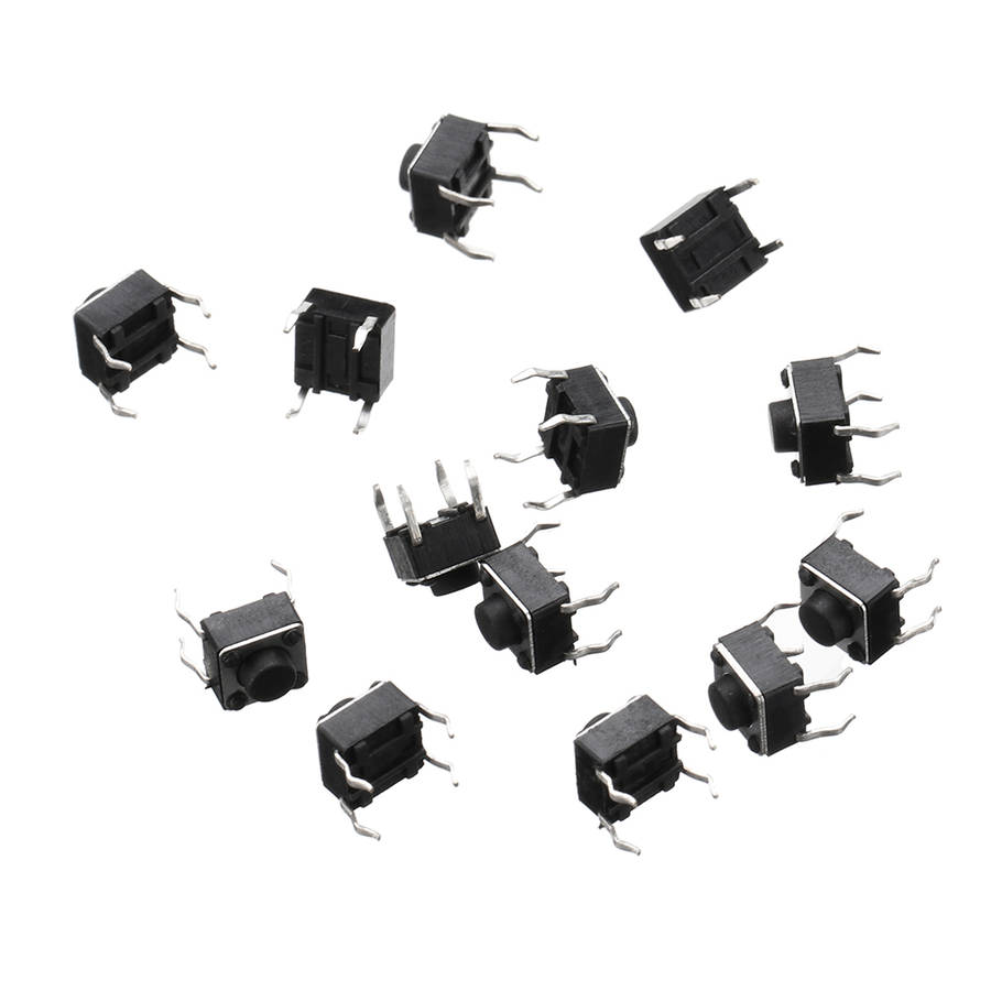 Feature: --Momentary contact. --4 pins, round black push button, through hole mounting. --Used in the fields of electronic products, household appliances and more. --High precision mechanism design offers acute operation and long service life. Package Included: 100 xkeys button swithes