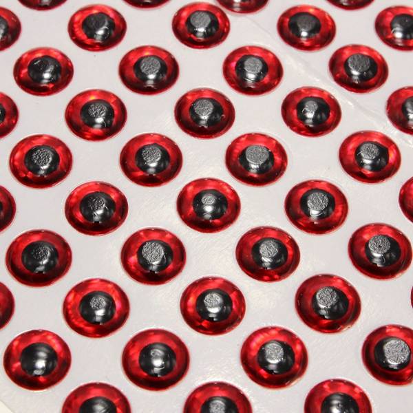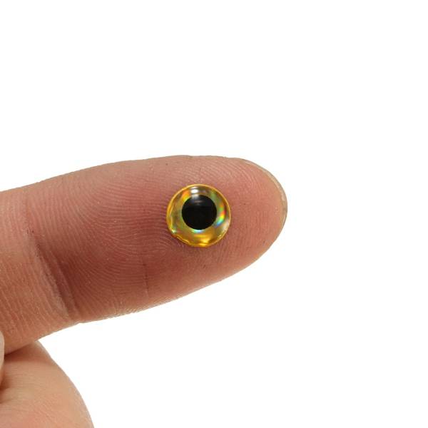 Package weight: 0.01 kg Specification: Color: Red,Silver,Gold Size:7mm/pc Weight:6g/(100pcs) Features: For flies you would need to glue or coat in UV resin Here I have for sale 3D Holographic eyes for lures fly tying etc These are self adhesive for dry models, but you need to use a waterproof glue/resin for lures. These eyes are not the cheap flat paper eyes they are soft molded resin 3D with black pupils and adhesive back to stick on lures, jigs. Package includes: 1 x 3D Self Adhesive Eyes (100pcs)