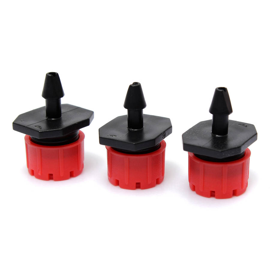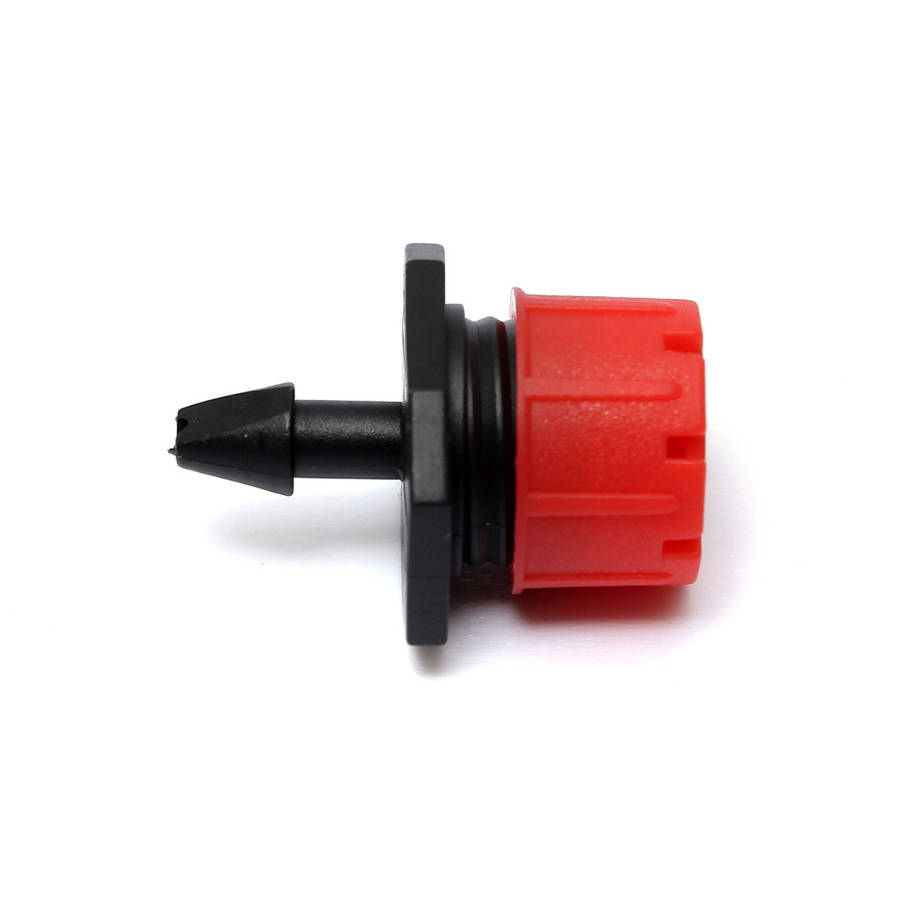 Descriptions: The dripper is adjustable, you can rotate screw(the red part) to adjust water yield. Also through rotating the screw stop the flowing water. 8 holes of the screw ensure the little possibility of flowing plugging.