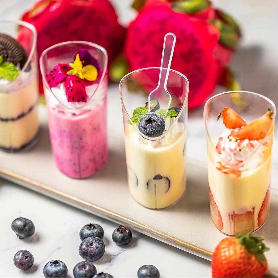 100pcs Clear Plastic Mini Tasting Spoons for Desserts, Ice Cream, Cake, Jelly, Pudding - Smooth Random Color Random style Material:Plastic Brand:MAMSHIB Item ID:WG991514