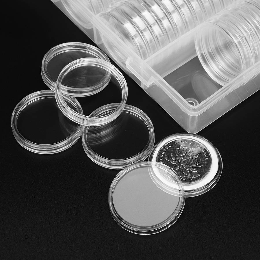 100Pcs Clear Round Coin Case Capsule Container Coin Holder Storage Box For 25/27/30mm