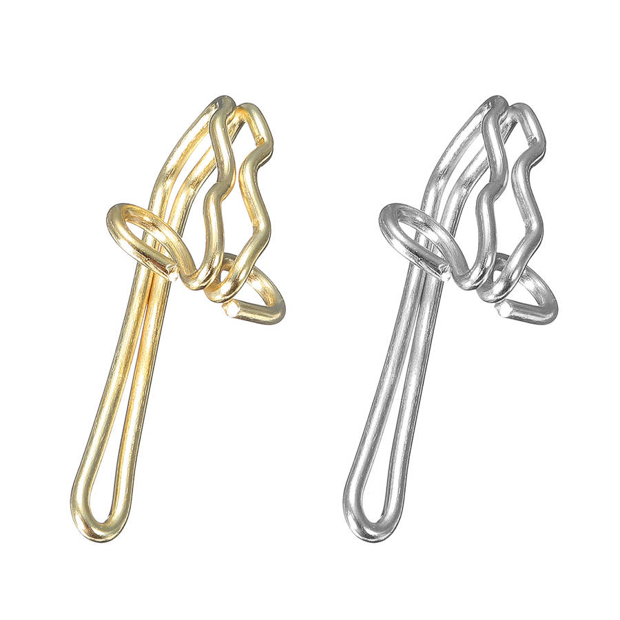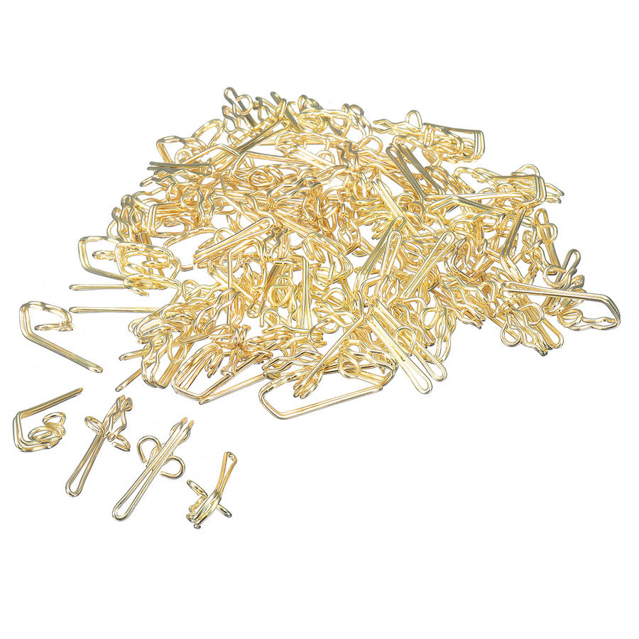 Description CURTAIN HOOKS 28mm FOR PENCIL PLEAT TAPES x 100 Specifications Material: Metal Color: Silver, Gold Size: 13*28mm Quantity: 100pcs Package included 100 X Hooks
