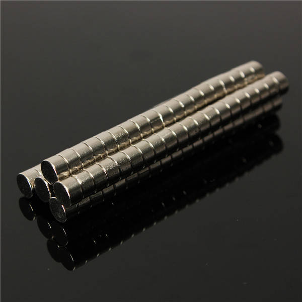 Description: 100pcs N50 Strong Disc Mini Magnets 5x3mm Rare Earth Neodymium Magnets Specification: Shape:Disc Size:Dia.5mm Thickness 3mm Material:Nd-Fe-B magnets Grade:N50 BR:14000-14500 GAUSS Hcj≥12KOe Hcb≥10.8KOe BHmax:48-51MGOEe Max Operating Temperature: 80 Celsius degree / 176 Fahrenheit degree Plating: Nickel+Copper+Nickel triple layer plated Quantity: 100pcs Features: Super strong Rare-Earth magnets - once they get stuck with each other, they are hard to break apart. Can also be used to extend protected lithium batteries with recessed contact points. Electrically conductive (making them suitable to extend recessed batteries). Perfect for sticking notes on fridge doors. Great for do-it-yourself projects. Please Note: 1. When connecting two magnetic buttons, draw them close to each other slowly and gently. Hard crushing would cause damage and cracks in the magnetic material. 2. Circular Disc Magnets are made from Neo Neodymium Magnet material and have unbelievable magnetic performances. Package Included: 100x 5x3mm Magnets