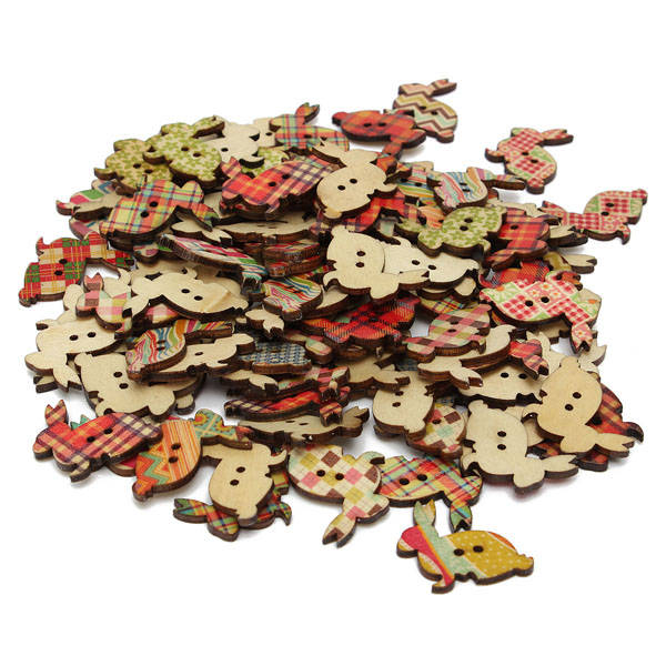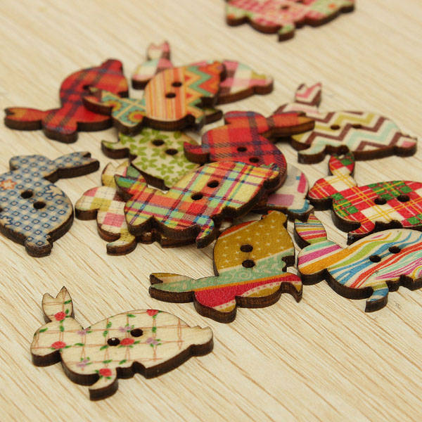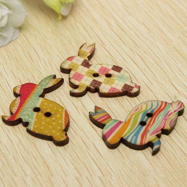 100pcs Rabbit Shape Wooden Buttons Craft DIY Sewing Accessories