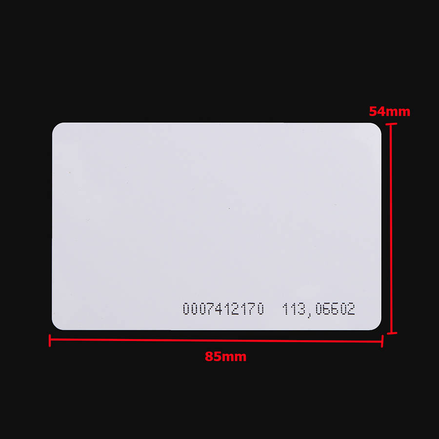 100% brand new and high quality. Each card pre-programmed with a unique ID number, which is printed on the card. ID card is suitable for 125KHZ card reader and reading distance is 0 - 10cm. Used in identification,financial identification,access control systems,low-frequency tag cards and so on. Read only, not HID card.