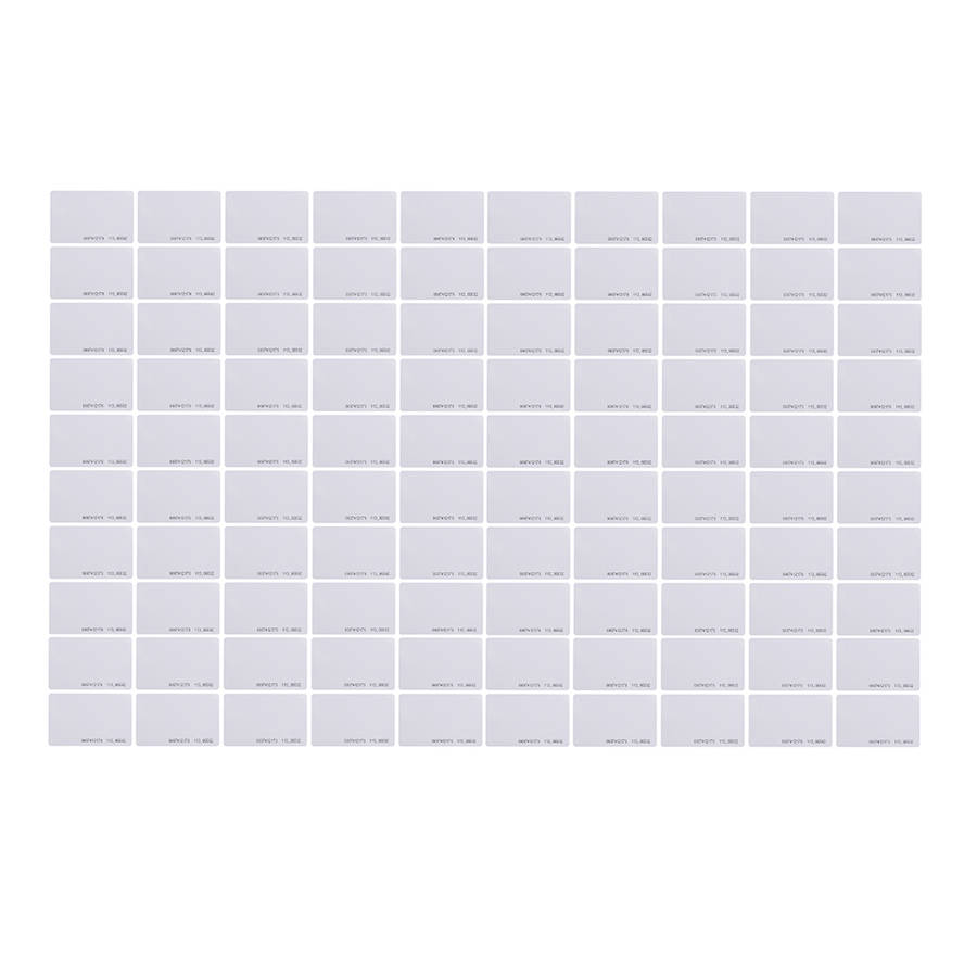 Frequency: 125 KHz Thickness: 0.9mm Size: 85mm x 54mm x 0.9mm Material: PVC Quantityt: 100pcs Color: White