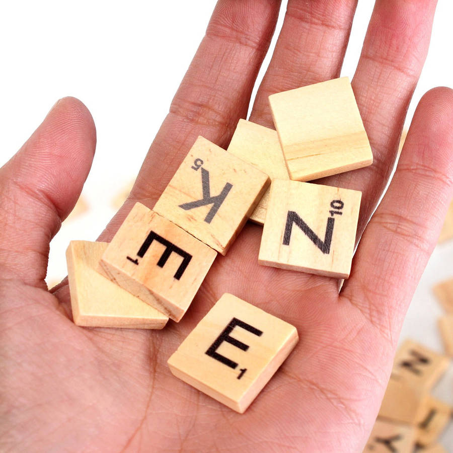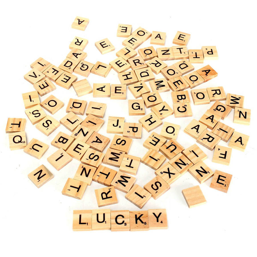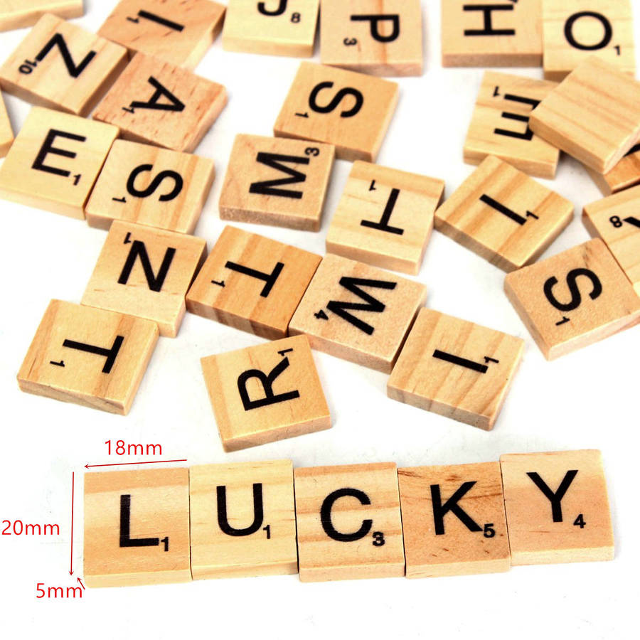 100pcs Wooden Scrabble Letters Scrapbooking Playing Game IQ Props Word