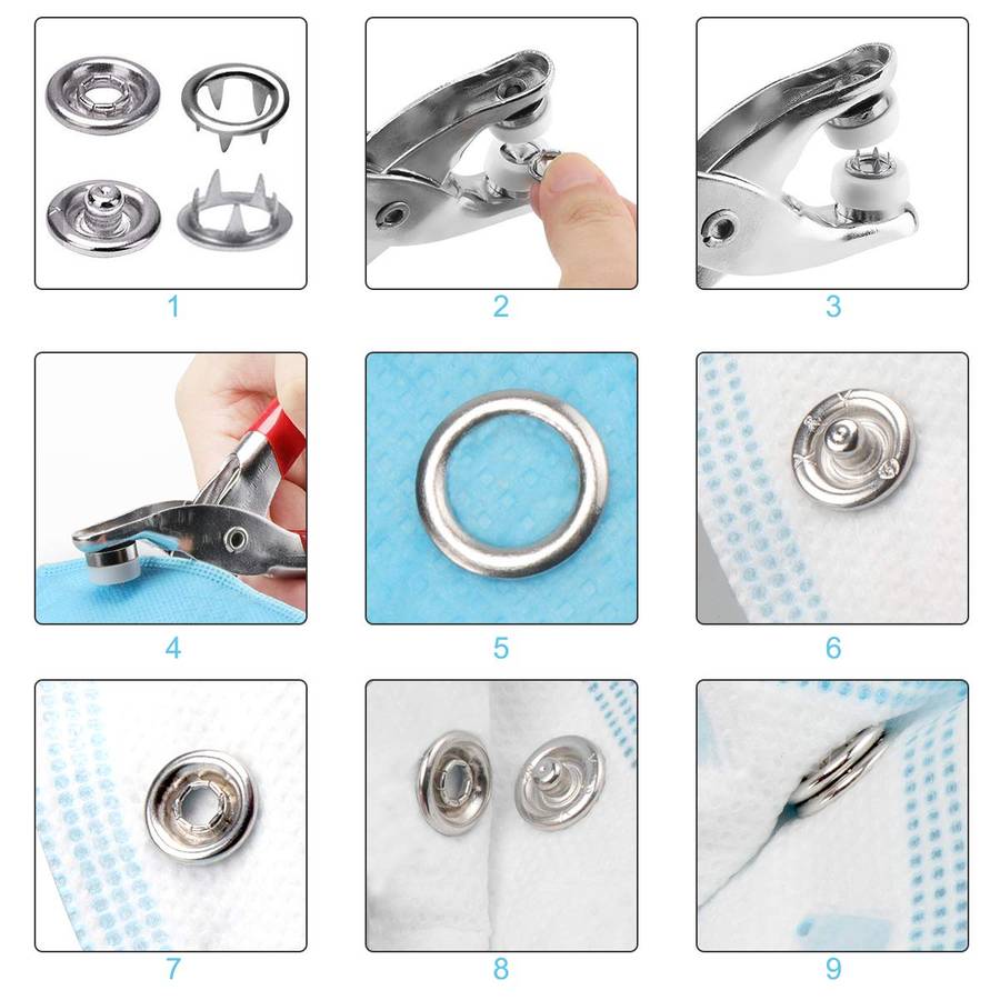 100Sets Handmade Sewing Sliver Metal Prong Snap Buttons Press Studs Fasteners B