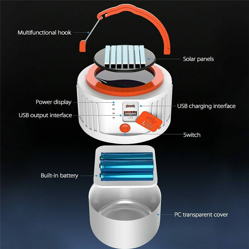 Application: Home lighting, emergency, garage lighting, night market, USB charging, emergency power bank