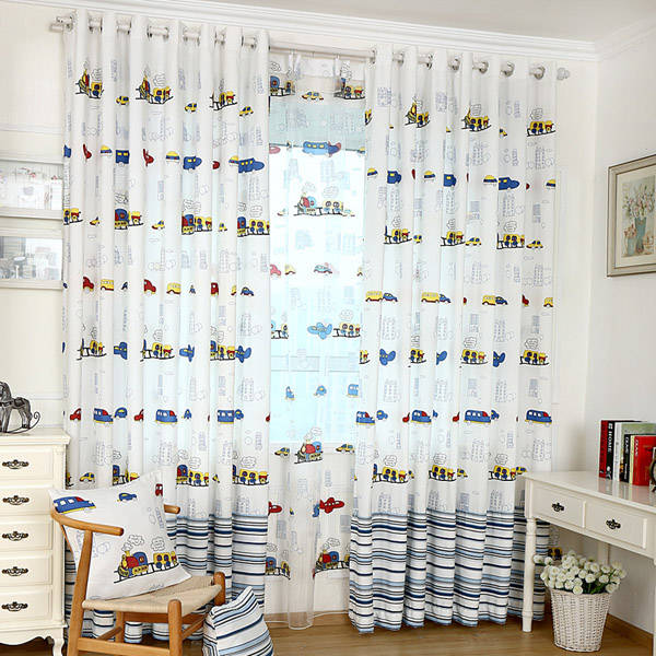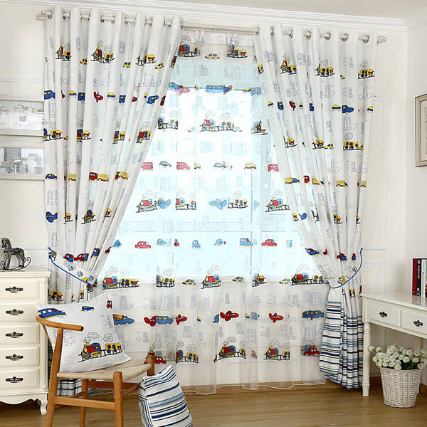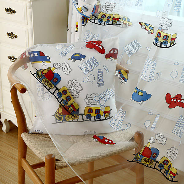 Cartoon Car Balcony Bedroom Voile Window Curtain
