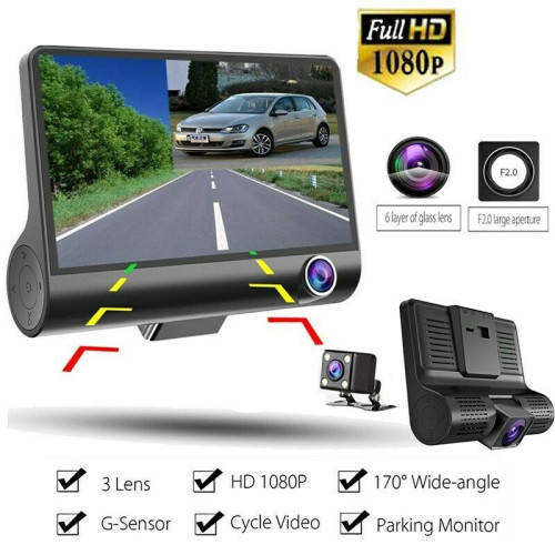 3 LENS - There are three cameras to record from, the front camera is Full HD 1080P, the rearview camera and the inside camera is 720P, which can record anywhere around your car and inside of your car. It supports Picture in Picture.