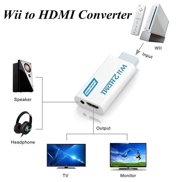 1080P Full HD TV Game Console Adapter Converter Automatic Upscaler 3.5mm Stereo Audio Wii To HDMI Converter
