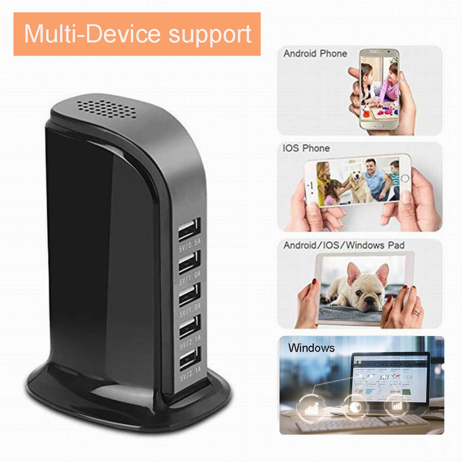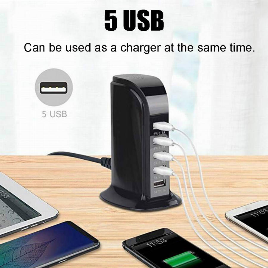 - Fast charge, support 5-port USB simultaneous charging and 5V 2.1A fast charge.
