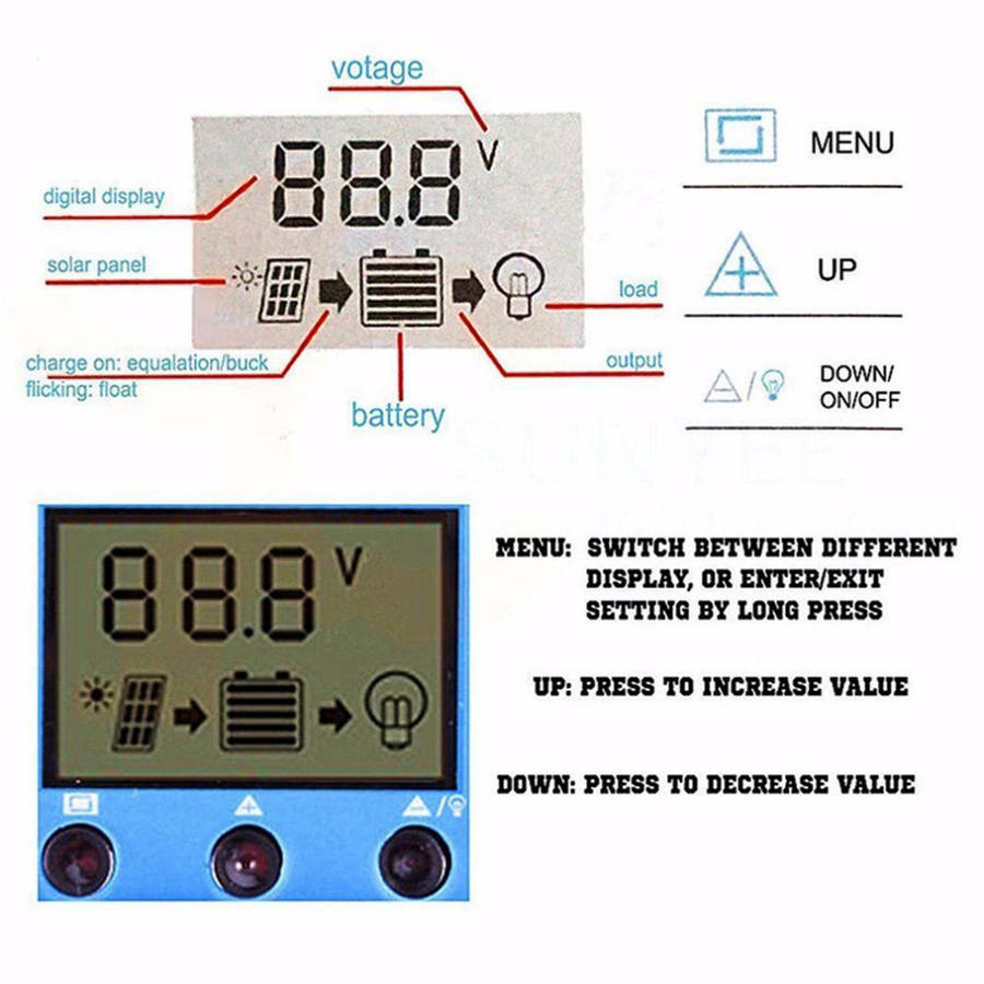 3.The regulator is only suitable for lead acid batteries: OPEN, AGM, GEL(It is not suited for nickel metal hydride, lithium ions or other batteries).