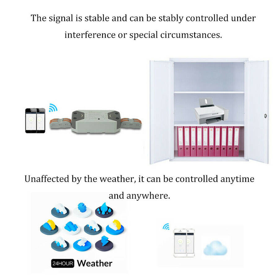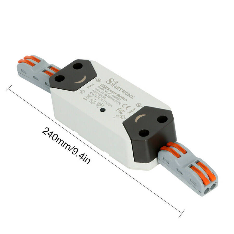Intelligent WiFi Switch. This device is an affordable 2.4G WiFi intelligent light switch that provides users with intelligent home control.Features: It enables users to remotely control all the connected appliances via the mobile app. Perfect for lamp, ceiling fan, floor light, outdoor landscape lighting and other appliances not over 10Amp. Connect with home Wi-Fi without hub required. Remotely turn on/off light or other appliances with smartphone App anywhere at any time as long as your phone has network. Simplest Installation Method. Less than 10 seconds to wiring breaker with your devices. Contain safe, convenient, good durability, insulated terminals, you just need press and Insert cables to finish wiring. Timer and count down switch. Set timer schedules to automatically on/off home appliances based on your preferences. You can set countdown, scheduled or loop timers to create your situational life. No restriction of both time and distance, remote control your device from anywhere with internet. One key sharing, sharer it to family members, the elderly and children easily using. Specifications: Material: ABS Voltage: 90-250V, 50/60HZ MAX Power: less than 2000W MAX Current: 10A Working Temperature: -15a - 80a Consumption: 0.5W Switch Type: Remote Control Controlled Method: intelligent phone APP Package List: S3211 1 * Wifi Intelligent Switch