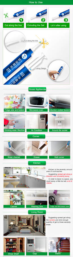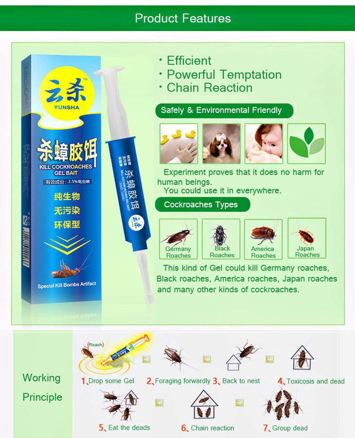 Description :10g Powerful Anti Cockroach Pesticide Control Gel Bait Drugs Poison Nest Environmentally Friendly Genuine SyringNon-toxic, Non-pollution, Non-irritation, It is more safety, you can rest assured to use it in your family.