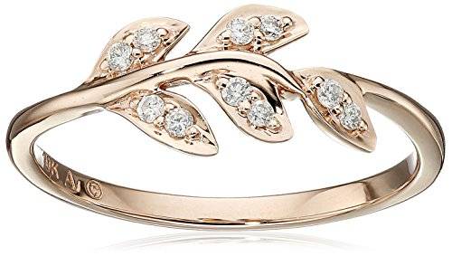 10k Rose Gold Diamond Leaf Ring (1/12cttw; I-J Color; I2-I3 Clarity); Size 7