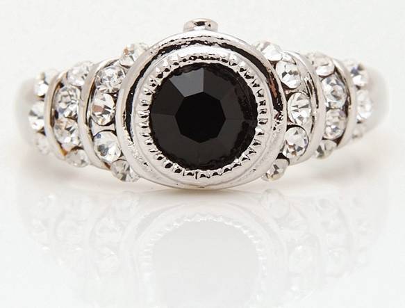 10k White Gold Filled Black Sapphire Ring - Size 10