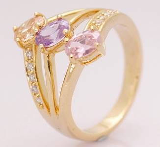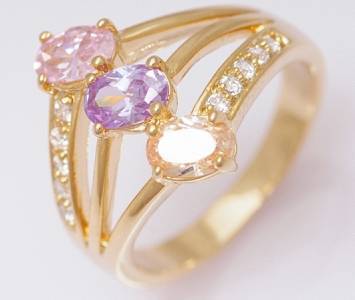 10k Yellow Gold Filled Lady's Three Gemstone Jewelry Ring P180 SizeP