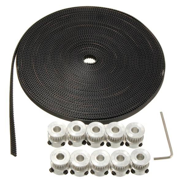 Package weight: 0.15 kg 10M 2GT Timing Belt 20 Teeth GT2 Aluminium Pulley For 3D Printer CNC RepRap GT2 Pulley: Teeth: 20 Groove width: 7mm Total width: 16mm Diameter of bore: 5mm Flange: Double Material: Aluminium GT2 Belt: Pitch: GT2 Width: 6mm Length: 10M Features: Durable and practical Designed specifically for linear motion GT2 Pulley and GT2 Belt are used together, very convenient to use Round tooth profile guarantees that the belt tooth fits smoothly 20 Teeth contact with the belt, that minimizes the chance of the belt slippings Package includes: 1 x GT2 Belt 10 x GT2 Pulley 20 x Screws 1 x Wrench(As Pictures)