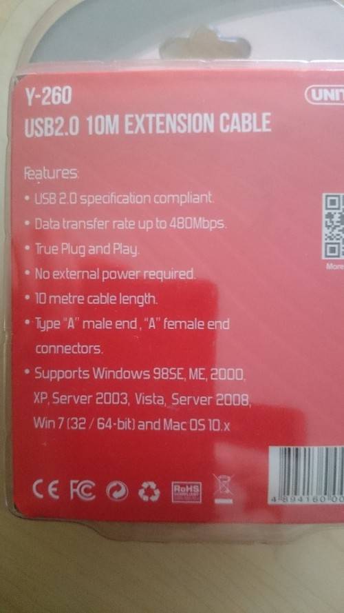 10m UniTek USB 2.0 Extention cable (Sealed)
