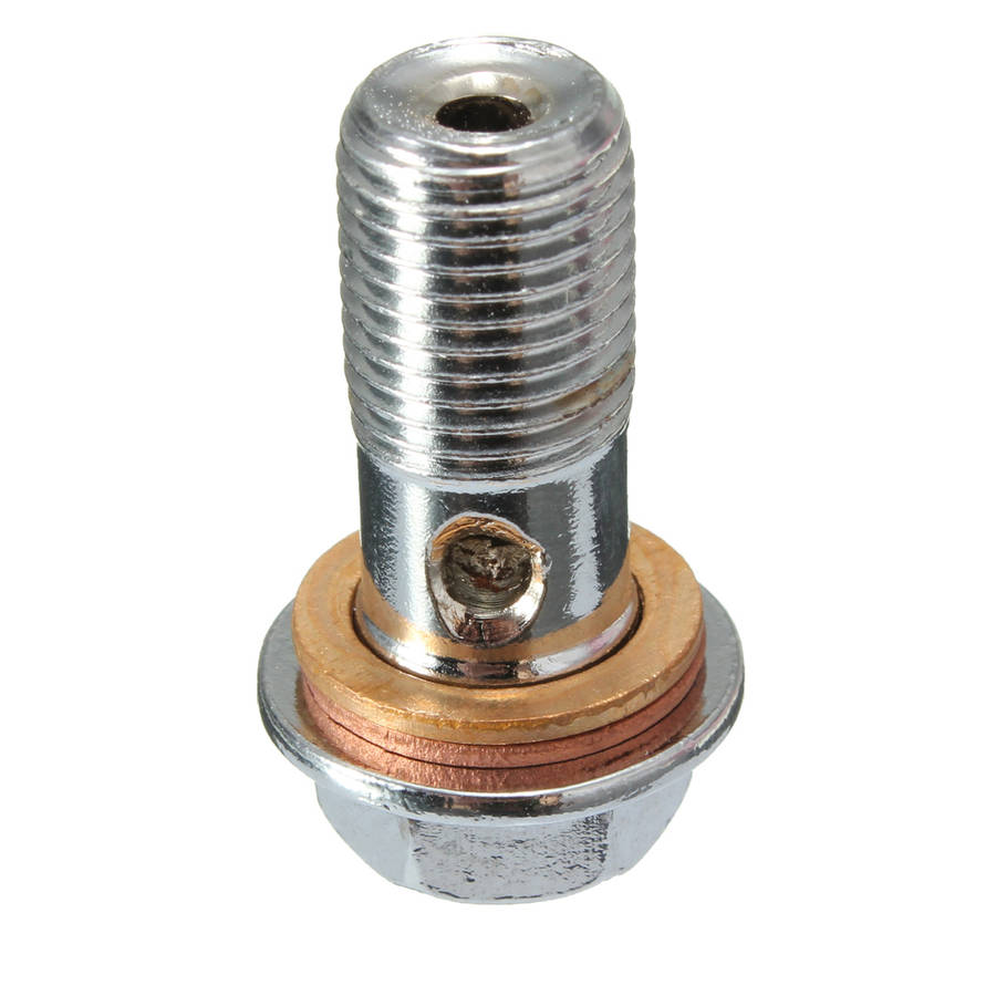 Specification: Material: Chrome Size: 10mm Diameter 1.00 Thread Pitch Item comes with a pair of copper banjo washers These bolts are measured from below the bolt head to the tip of the threads at 18mm long Package Included: 1 XChrome Banjo Bolt 2 X Copper Banjo Washers