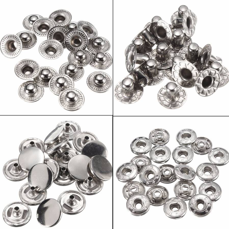 There are 30 sets press studs in the box,1 Set popper = back+ front +male+ female