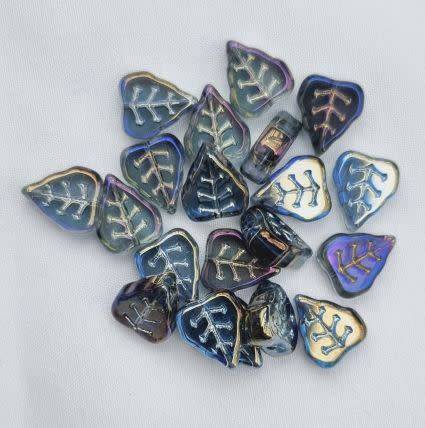 10pc (12x10mm) Leaf / Blue / Purple / Electroplate Glass Beads