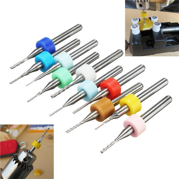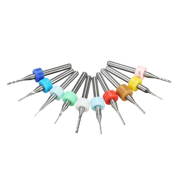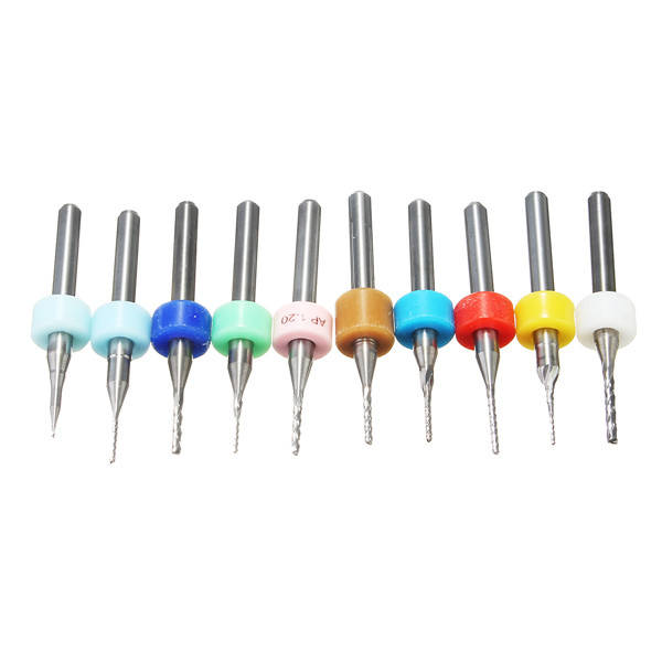 10pcs 0.5-1.4mm Carbide End Mill Set PCB Cutter 3.175mm Shank CNC Engraving Bit