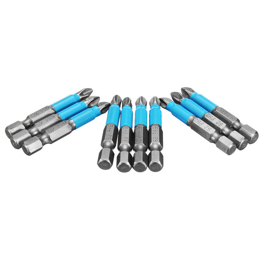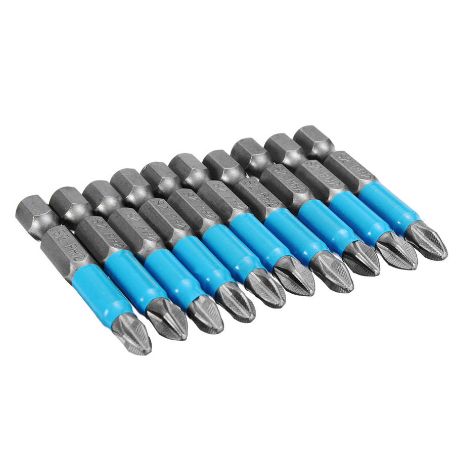 Description: 10pcs 1/4 Inch Hex Shank Anti Slip PH2 Phillips Magnetic Impact Screwdriver Bits