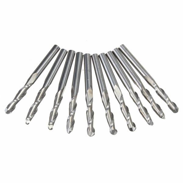 10pcs 1/8 Inch Shank 2 Flutes Carbide Ball Nose End Mills 17mm 2 Flute CNC Cutting Tool