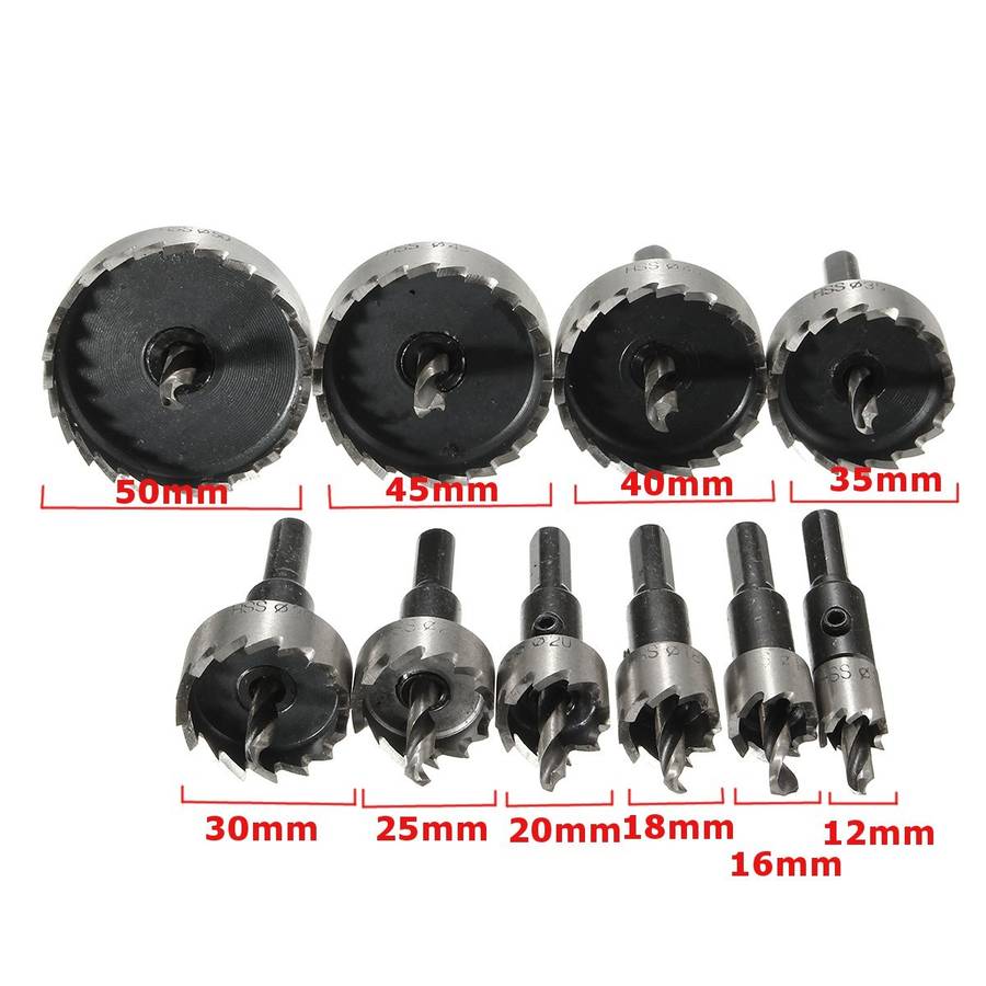 Description: 10pcs12 / 16 / 18 / 20 / 25 / 30 / 35 / 40 / 45 / 50 mmHSS Hole Saw Cutter Drill Bit Set Metal Wood Alloy Cutter Tool Specification: Material: HSS / High Speed Steel Size: 12 / 16 / 18 / 20 / 25 / 30 / 35 / 40 / 45 / 50 mm Please work safely. (Protective equipment) Shank Size: approx. 6-8mm About 6mm Cutting Depth Optimal Rotational Speed: 280~300r/min